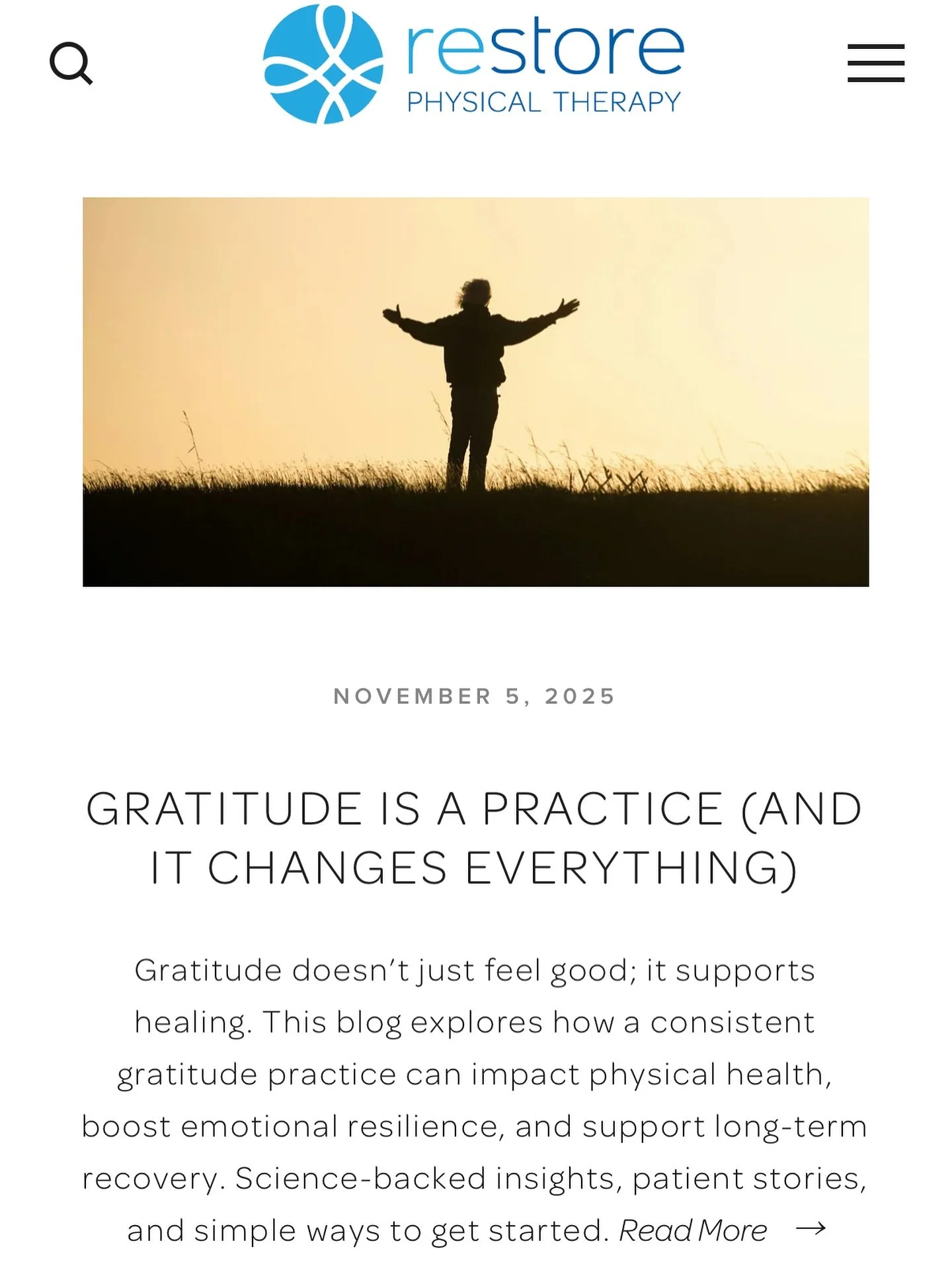 If you're ready to break free from pain, regain your mobility, and embrace a healthier life, choose Restore Physical Therapy. We're here to provide a personalized physical therapy solution to enable you to pursue your passions without relying on pain medications, invasive procedures, or downtime. We’ll treat the entirety of who you are, not just focus on a diagnosis, to restore your physical function and your overall well-being.